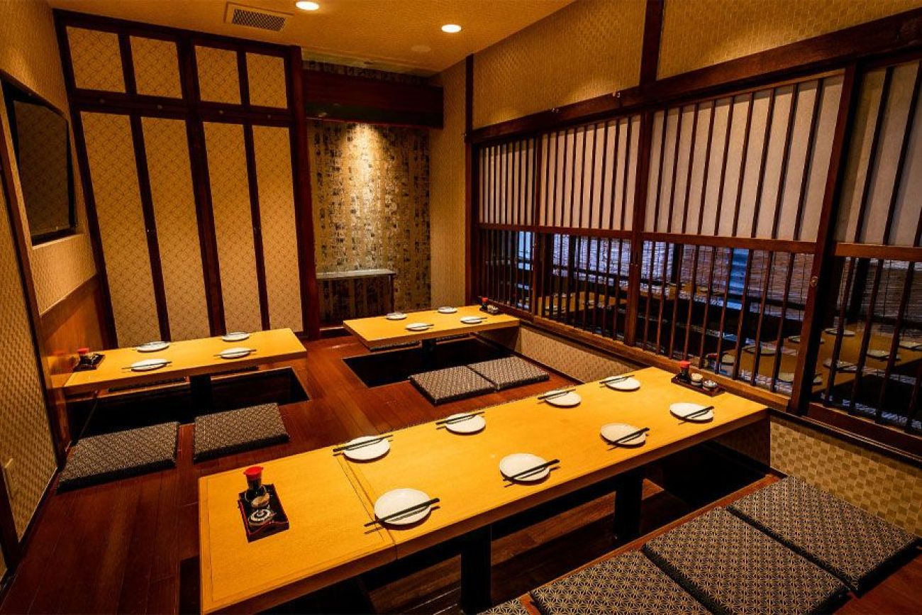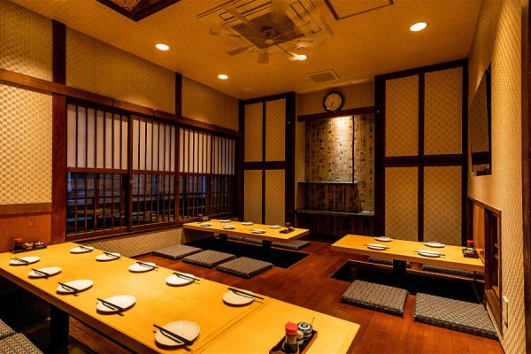 足を延ばして寛ぎながらゆったりできる人気の掘り炬燵席も多数ご用意しております。フロア貸切も可能で、30名~最大50名様までご利用いただけます。